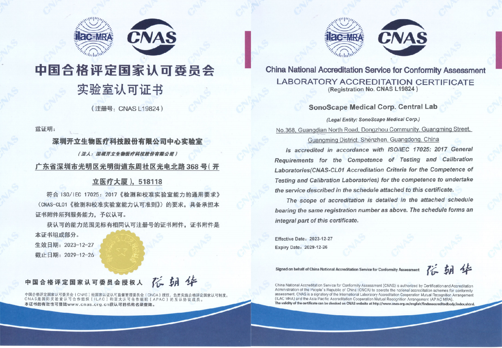 CNAS认证证书