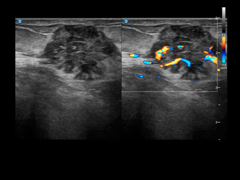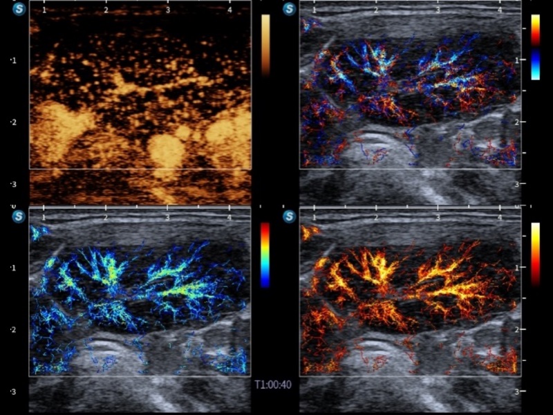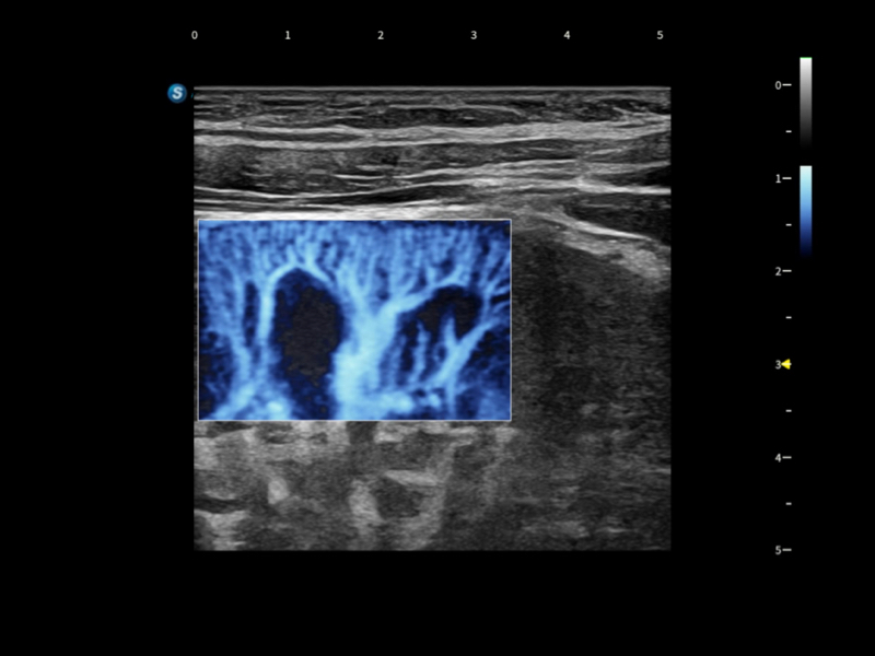 通过创新的Matrix E自适应滤波算法,能有效滤除软组织和噪声信号,最大限度保留超低速微细血流的信号;结合超长时间域算法,极大提升细微血流的敏感性和空间分辨率,更真实的反应组织、包块的血流灌注情况。