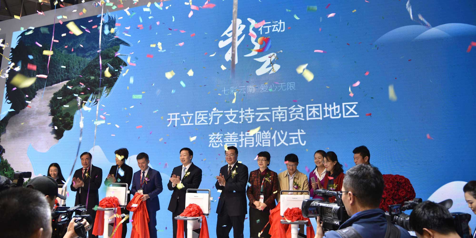 为响应国家精准扶贫的号召,并配合2016-2020年《云南省健康扶贫计划》,由开立医疗联合云南省医疗扶贫基金会和云南省超声医学会共同举办的“彩云行动”——开立医疗支持云南贫困地区慈善捐赠仪式于上午10时在CMEF开立展台隆重举行。云南省政府、云南省卫计委、国药集团以及中国医学装备协会等单位相关领导出席了本次“彩云行动”启动仪式并剪彩。