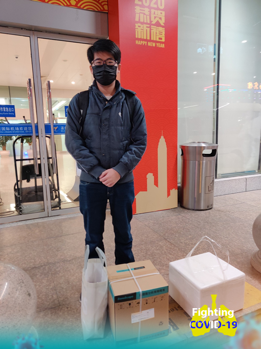 开立医疗杭州办工程师赵旭佳承接此次安装任务,除安装任务外,他还要从杭州携带重达25KG配套试剂盒送往温州机场。