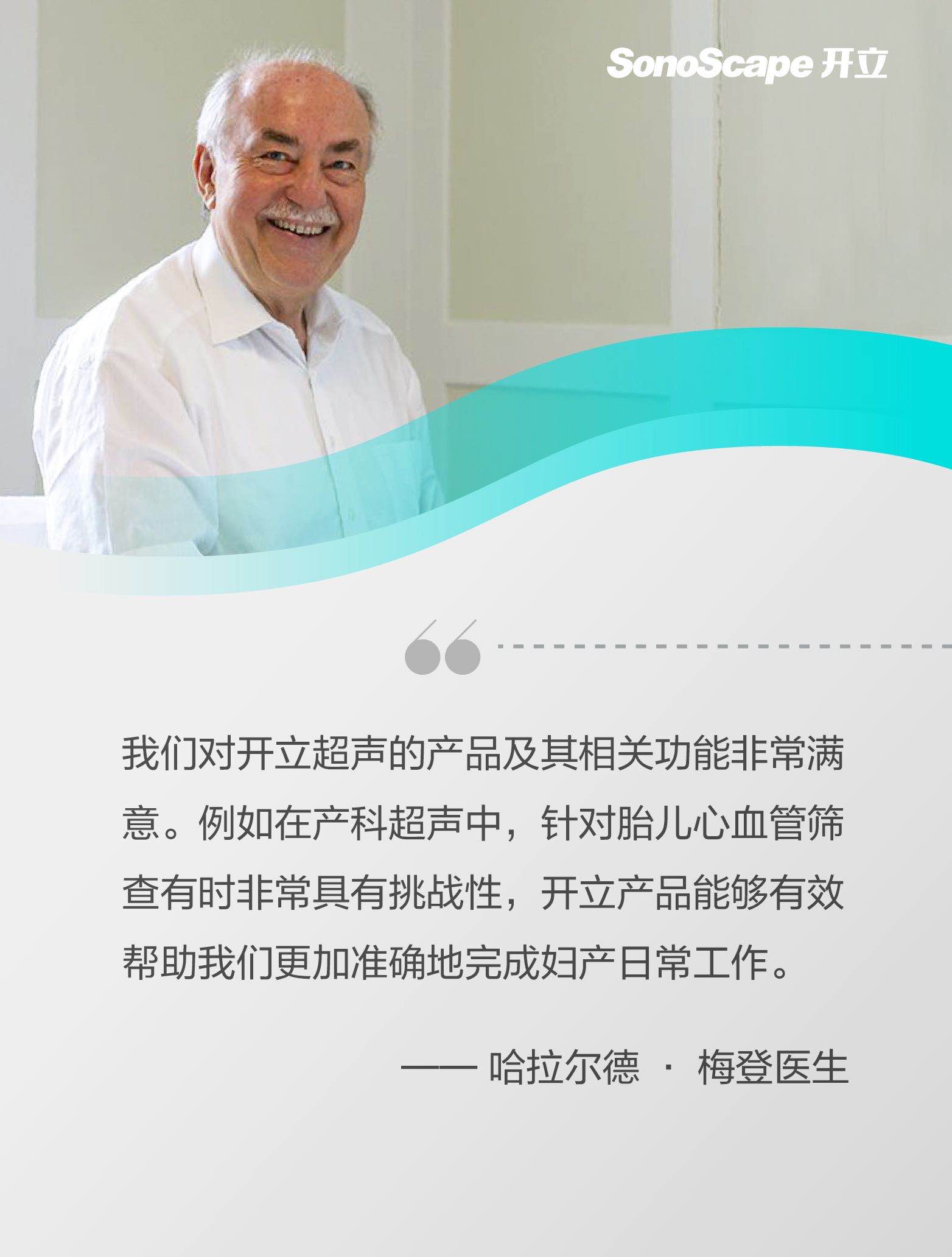 在谈及未来医疗发展时,Harald Meden医生表示“人工智能为新时代的医学进步提供了更多可能,人工智能切实为临床工作提供了许多帮助。在开立超声智能功能的帮助下,我们将会为社区居民提供更好的服务。”
