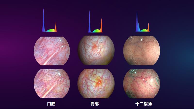 如何优化成像技术,凸显病灶信息以降低对临床医生诊断经验的要求,进而提高内镜下疾病的有效性和敏感性是当前内镜的重要发展方向。开立医疗在内镜光学染色技术上所推出的聚谱成像技术(SFI)和光电复合染色成像技术(VIST)已经得到临床医生的广泛认可,体现出巨大的临床价值。我们通过大量的临床实验发现,由于不同部位的组织结构不同,所适应的光谱配比等染色成像的参数也不同。据此需求,我们推出了可以根据部位智能自适应调节染色参数的成像技术——智谱iSpectra。